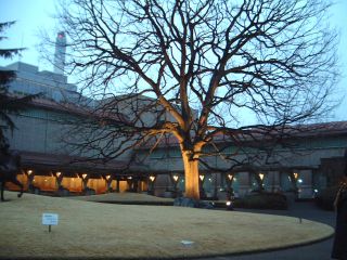 | 世田谷区砧(きぬた)公園内につくられた公園美術館で周辺の環境を配慮した低層の建物であり、各建物が回廊で繋がっています。石とタイルによる外壁と銅版によるヴォールト屋根の外観です。行った時は既に閉館していて夜景とホールのみしか見れませんでした。外観の屋根が以前見たときは緑だったのですが、錆止め塗料の色になっていましたが、どうしてなんでしょうか?ボールト屋根の似合うこの建物は砧公園の一部に違和感無く、たたずんでいました。併設されているレストランはこの辺りでは有名とか。 |